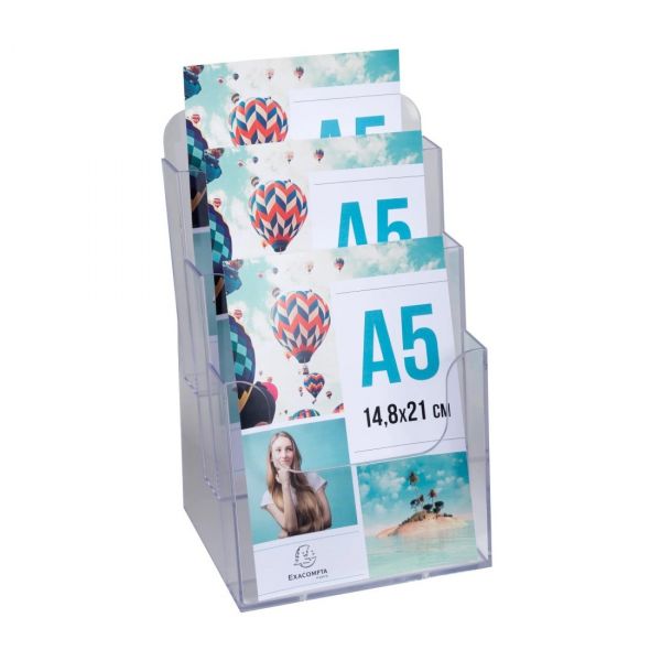 Поставка за брошури EXACOMPTA А5 155 x 237 x 339, настолна, кристална, 3 отделения