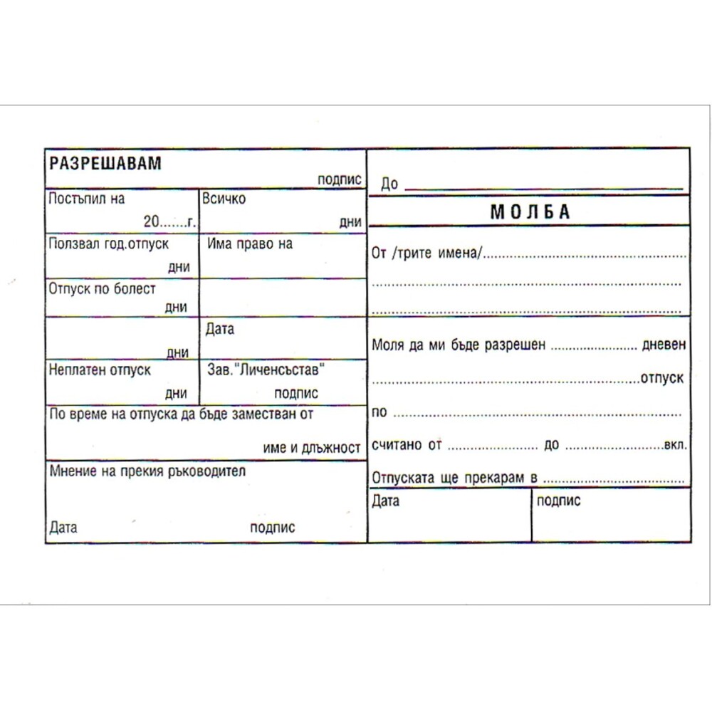 Молба за отпуск.Химизирана хартия.Формат А6.