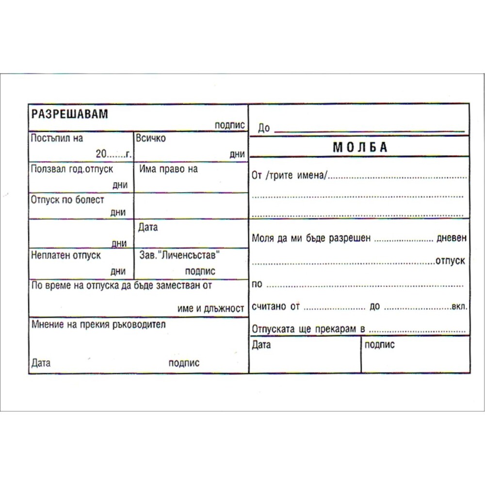 Молба за отпуск.Вестникарска хартия.Формат А6.