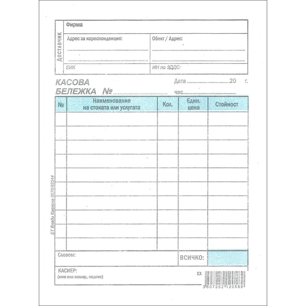 Касова бележка голяма.Формат А6.Химизирана хартия.