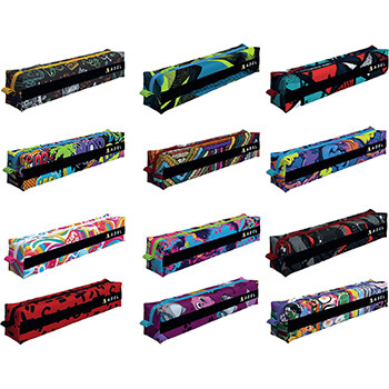 Празен несесер, с два ципа, подходящ за цветни моливи, флумастери и други ученически принадлежности.